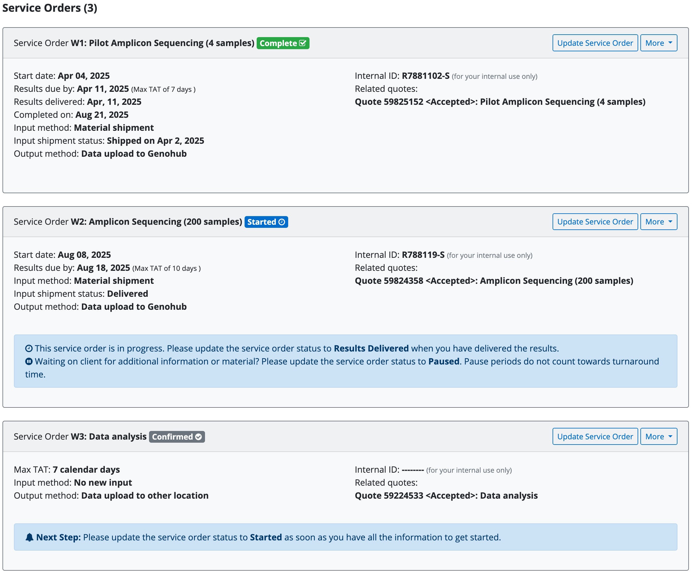 Each Service Order has its own start date, turnaround time (TAT), and delivery date,